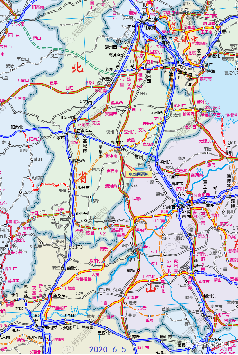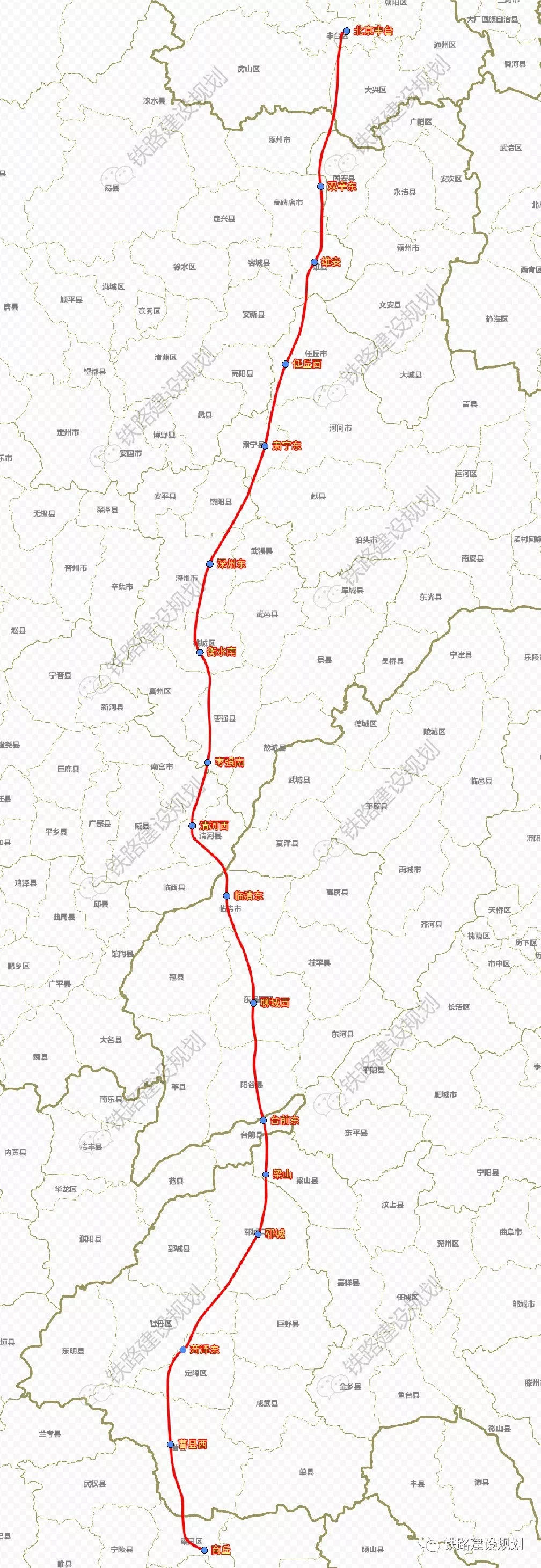 全线共设北京丰台、双辛、雄安、任丘西、肃宁东、深州东、衡水南、枣强南、清河西、临清东、聊城西、台前东、梁山、郓城、菏泽东、曹县西、商丘站17个车站。