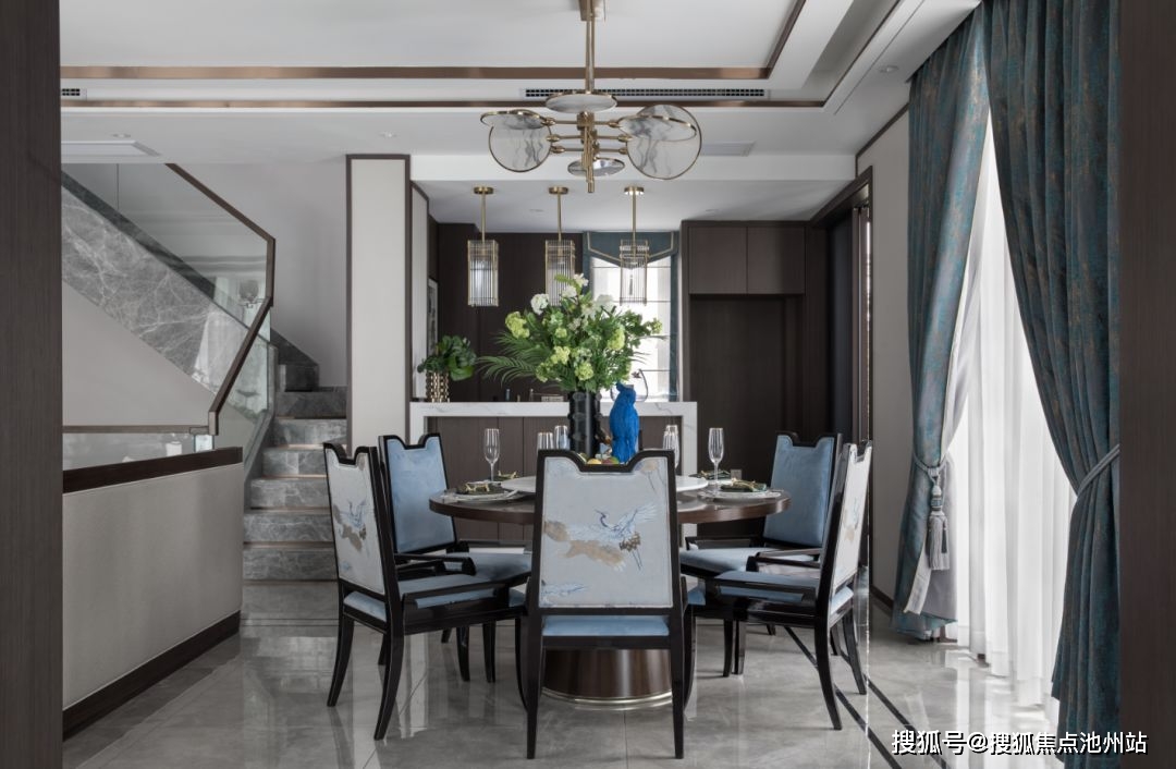 在设计选材上,选择了带有时尚感的木饰面、浑然天成的石材,有艺术气息的灯饰相互搭配,极力营造出新中式大气的感觉,让居者、观者站在各自不同的角度皆有多种自我意识里对生活态度的一种审视。