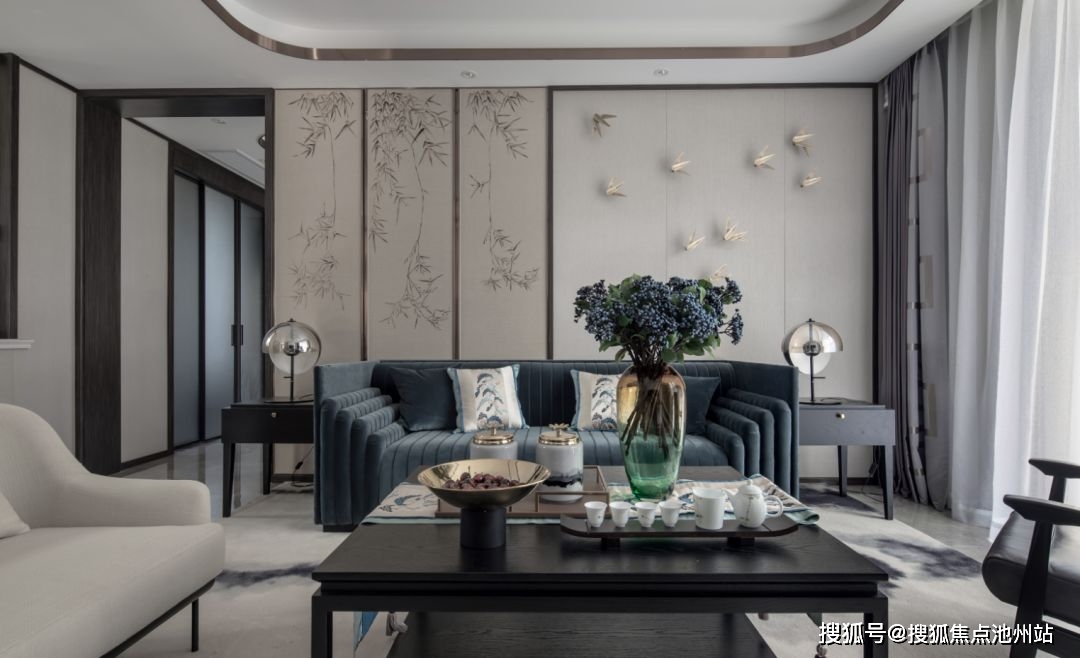 在整体设计上,采用新中式风格,表达一种简约的精致生活品味。