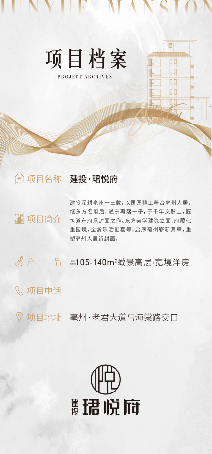 免责声明:本项目推广名为“建投·珺悦府”,备案名为“亳州市2019-022地块项目”;本资料文字、数据和图片仅供参考,不作为要约或承诺。相关内容不排除因政府和相关规划、规定及开发商未能控制的原因而发生变化,最终以政府批文为准,买卖双方权利义务以双方签订的《商品房买卖合同》及附件等协议为准。在法律允许范围内,本广告最终解释权归开发商所有。本广告有效期截至2022年3月17日。如遇版权问题,请及时与我方联系删除。预售证号:亳高新区规建第2021119号、亳高新区规建第2021120号、亳高新区规建第2021121号、亳高新区规建第2021122号、亳高新区规建第2021161号、亳高新区规建第2021173号、亳高新区规建第2021174号、亳高新区规建第2021175号、亳高新区规建第2022011号。
