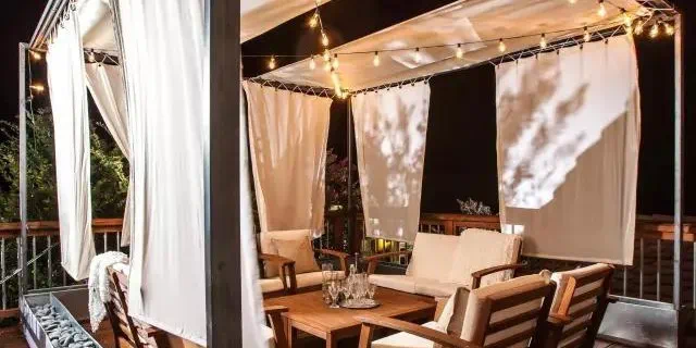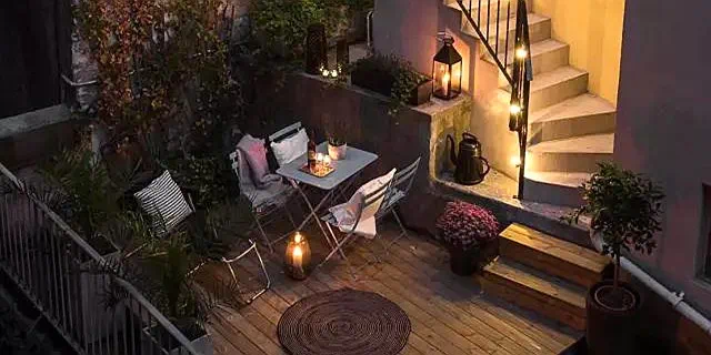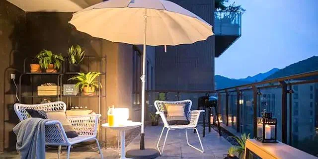 此外,外观古朴自然的水泥砖,也适用于室外的地砖铺设。这种材料自重较轻,强度较高,环保效果更是杠杠的,深受国内消费者的欢迎。当然,用青石板、鹅卵石、花岗岩等石材作为露台地面,也是不错的选择。露台灯光户外壁灯多为封闭式结构,注重防水性能。灯光柔和、安装方便、装饰性强等优点,使之成为室外空间必不可少的理想灯具。串灯最有利于烘托环境气氛,情侣之间想要营造温馨浪漫的感觉,就用充满创意的串灯把气氛点燃吧!