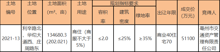 土拍公示!亳州交投落子西部,成交总价51100万元!