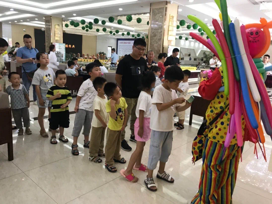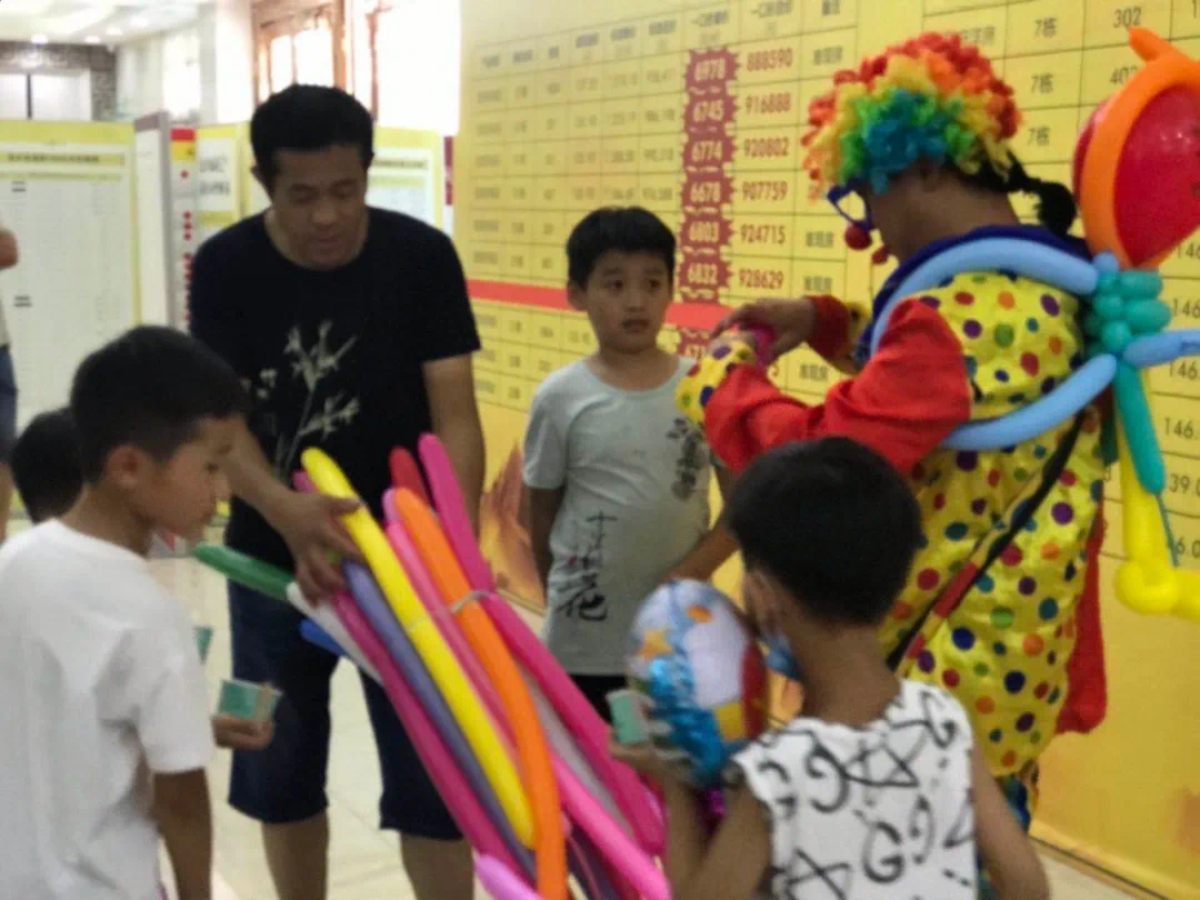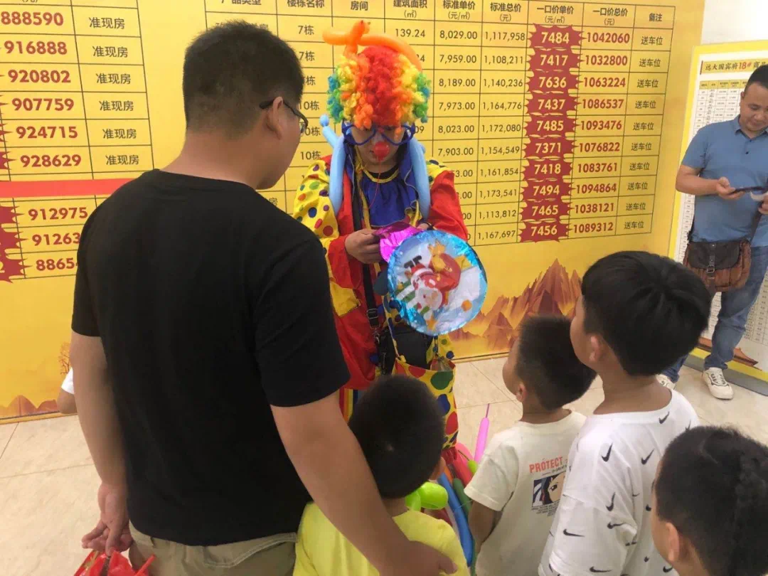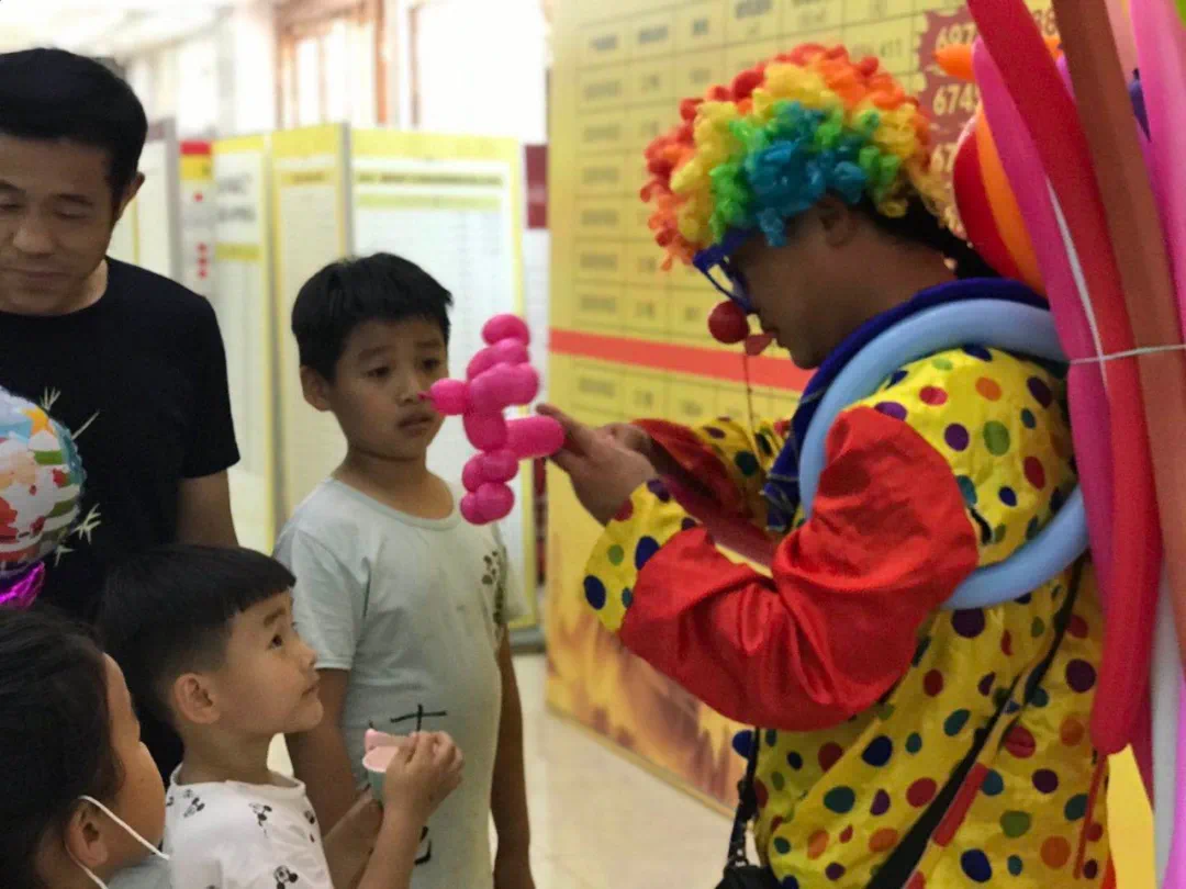 长长的气球在小丑哥哥手中来回的扭折几次便折出各式各样有趣的造型赢得现场小朋友的阵阵尖叫