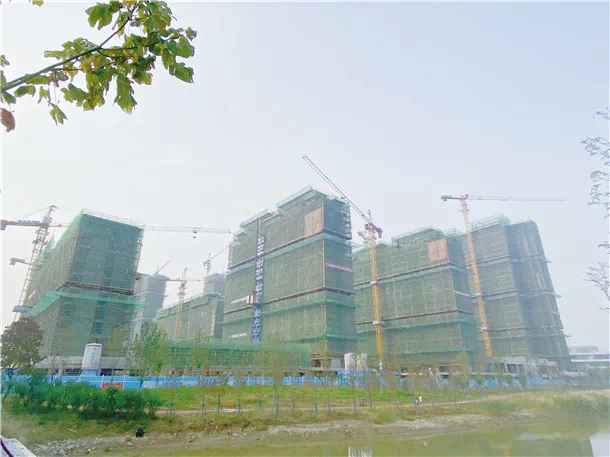 2021年:10月二区全区所有楼栋基本全部封顶,项目商业/金街/公寓封顶大吉,同期一区园内道路/绿化同步施工;