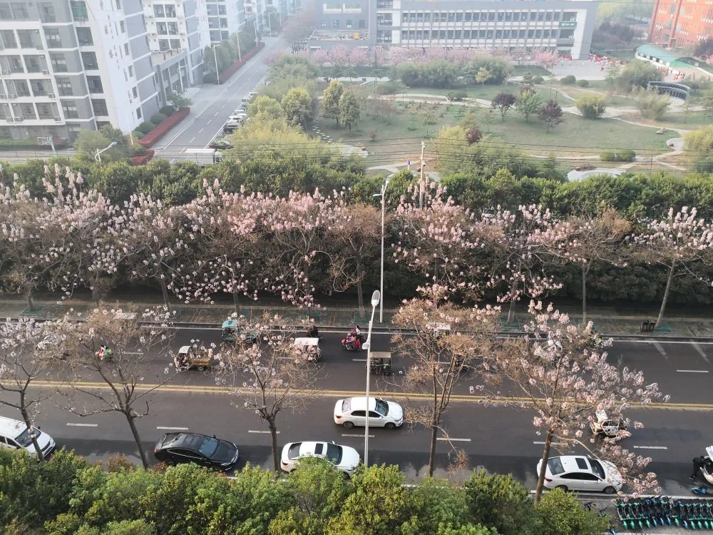 另外,在市区希夷大道、魏武大道、南湖公园周边等地,盛开的晚樱花团锦簇,随风摇曳,让四月的城区更显姹紫嫣红、春色满园。